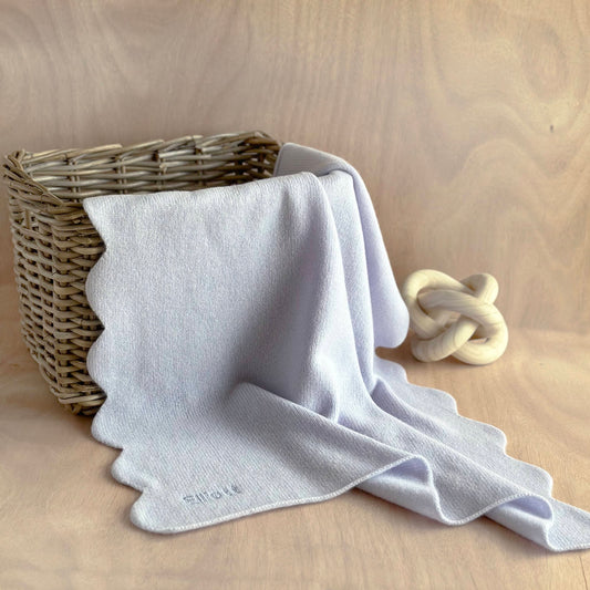 Cashmere Scalloped Edge Baby Blanket - Soft Blue