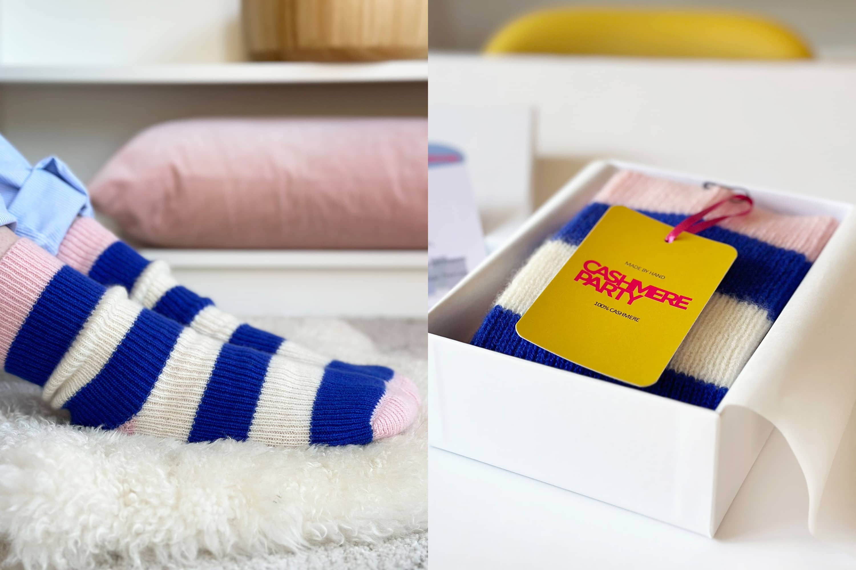 Cashmere Frill Bold Stripe Baby Blanket with Personalisation in Blue and Pink
